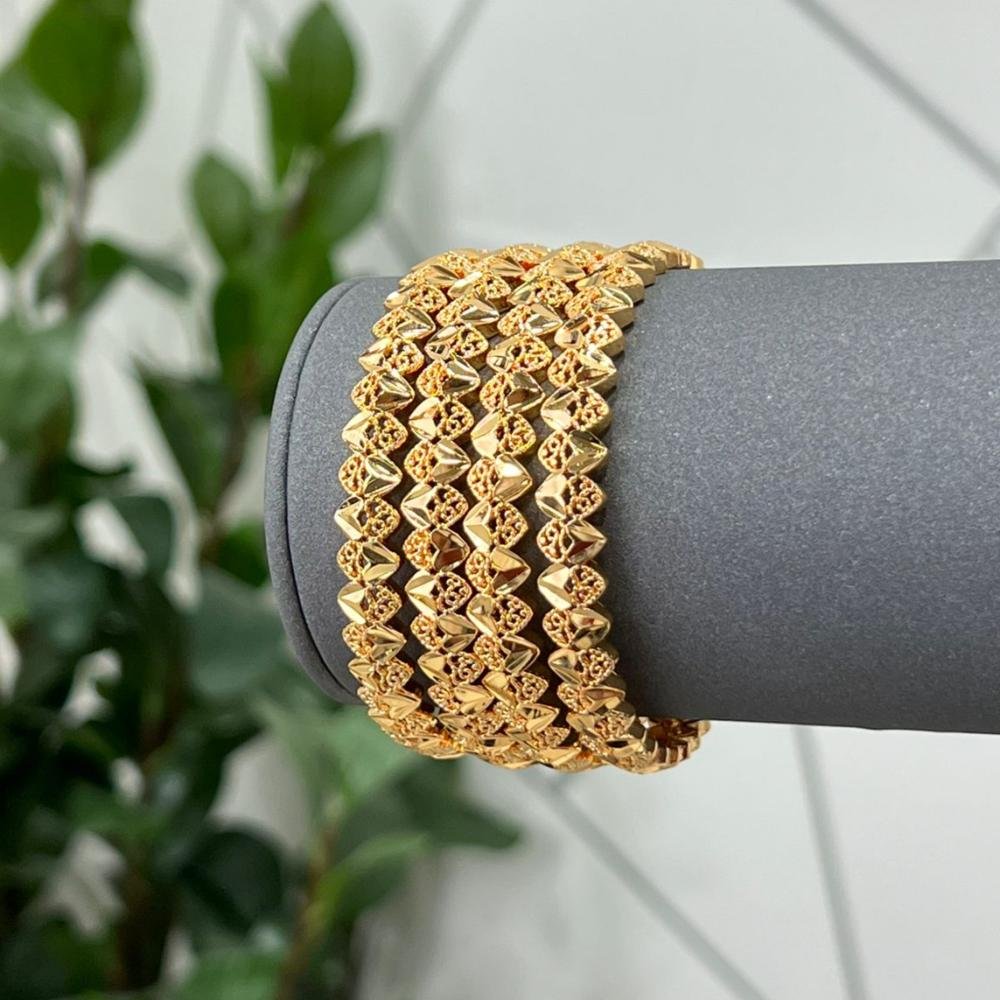 Gold-plated bangles offer a touch of luxury that subtly illuminates your wrist. With their intricate design and lustrous gold plating, these bangles add a captivating golden sheen, enhancing any look. They are a versatile accessory suitable for all occasions, whether formal or informal.