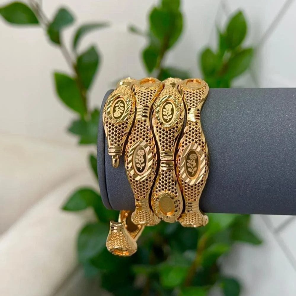 Gold-plated bangles offer a touch of luxury that subtly illuminates your wrist. With their intricate design and lustrous gold plating, these bangles add a captivating golden sheen, enhancing any look. They are a versatile accessory suitable for all occasions, whether formal or informal.