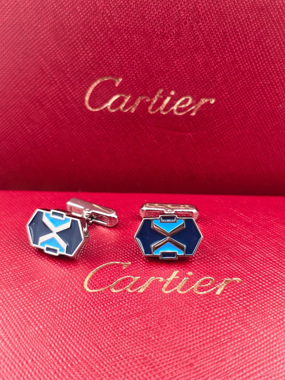 - Premium Cartier cufflinks with geometric enamel design