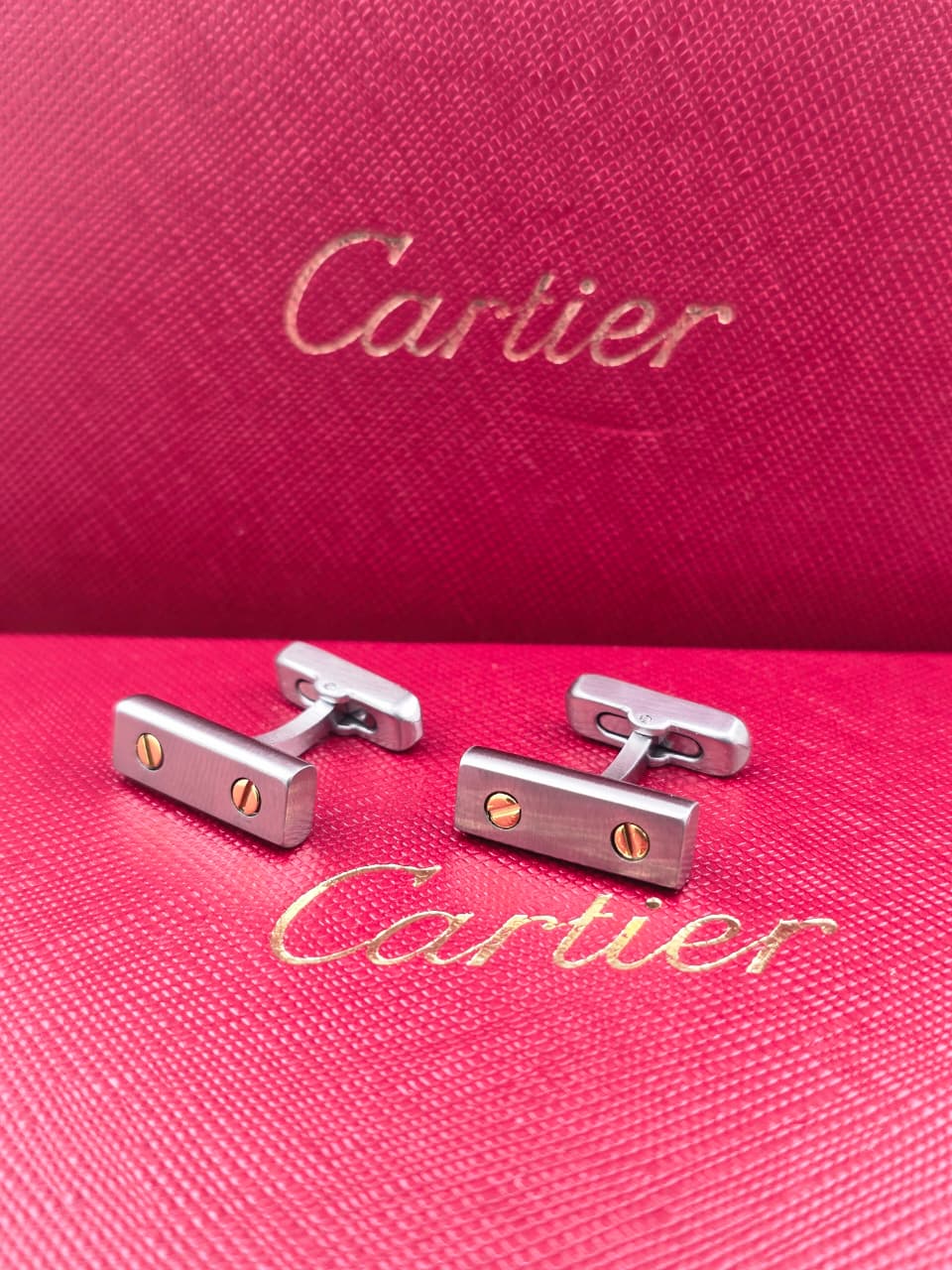 • Iconic Cartier cufflinks with signature screw motif design