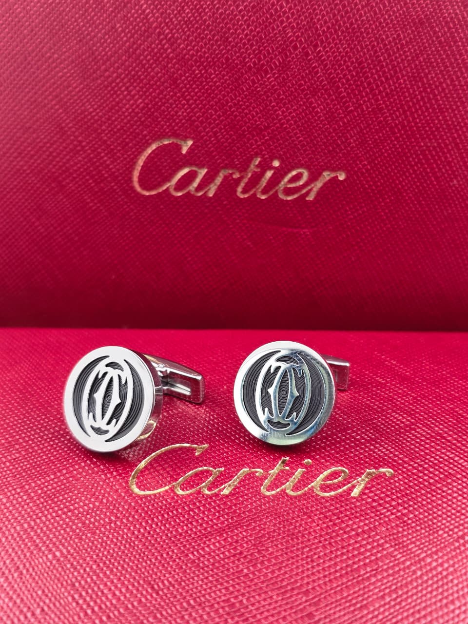 Expertly crafted from high-quality stainless steel, these luxury cufflinks for men offer durability along with a polished, refined finish. The contrasting black and silver tones enhance the visual depth, while the signature Cartier emblem reflects prestige and luxury.
