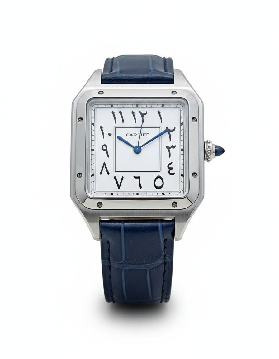 Elevate your style with the Cartier Santos Dumont, featuring a rare and sophisticated Arabic calligraphy dial. This watch is designed for those who appreciate fine craftsmanship and want a timepiece that stands out with a premium look and feel.