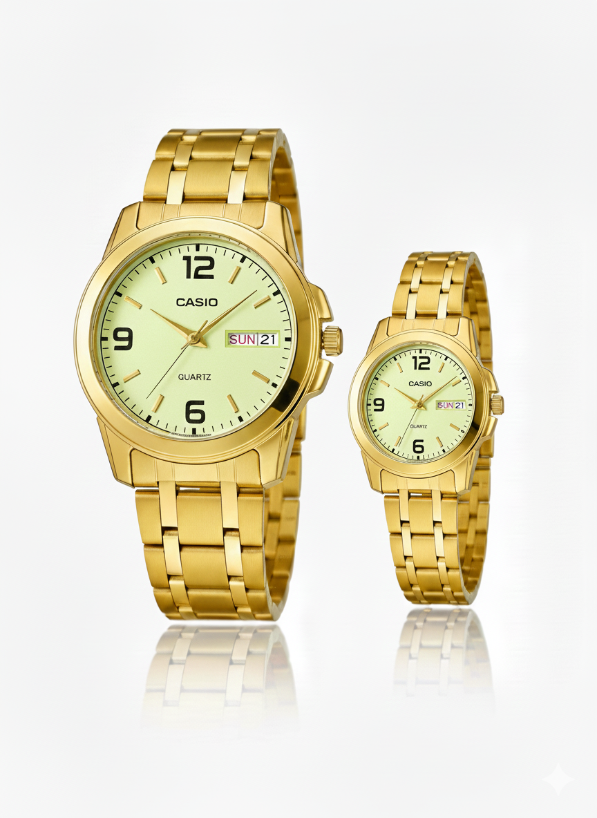This premium Casio couple watch set is designed for couples who appreciate timeless style and reliable performance. Crafted with a high-quality stainless steel bracelet and a refined dial, this matching set offers a classy and elegant look suitable for daily wear and special occasions.