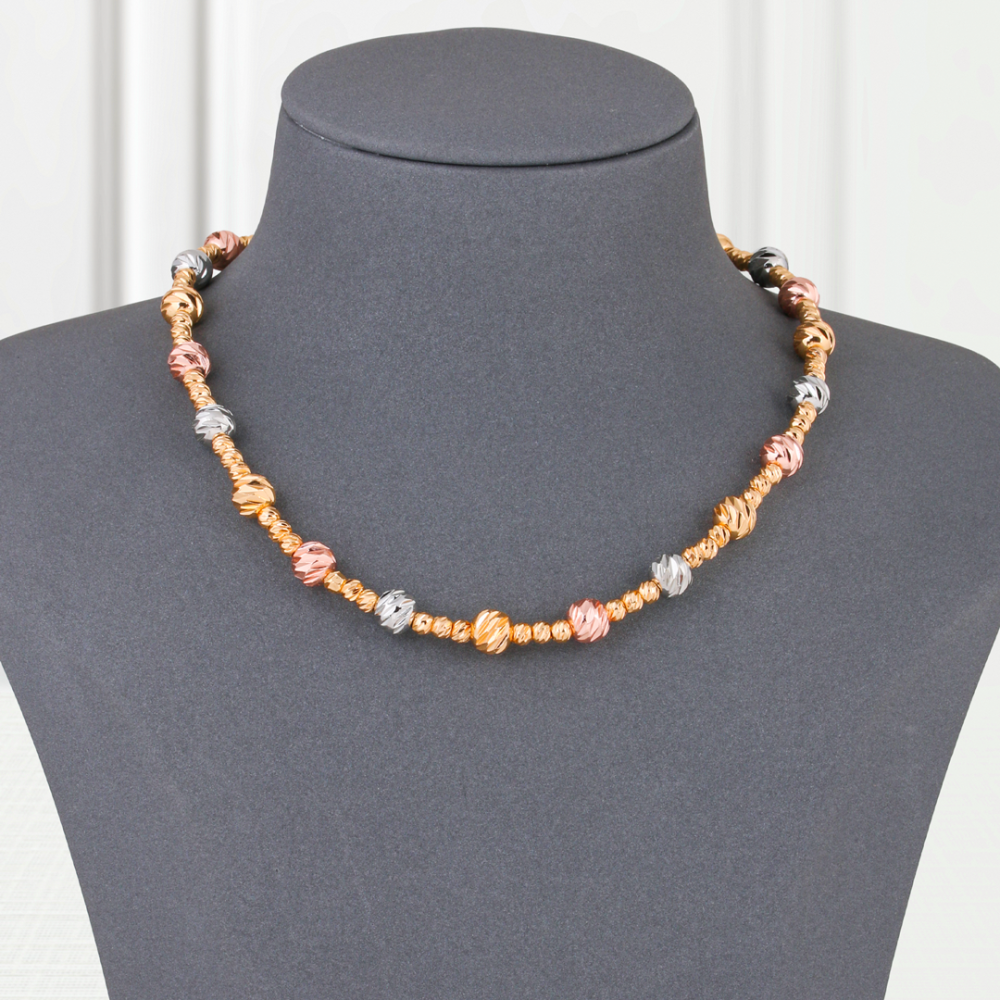 Stand out with a unique look with the Choker Gold Alternative Rosary in three colors . The elegant and varied design combines gold, silver and copper to give you a modern touch suitable for all times.