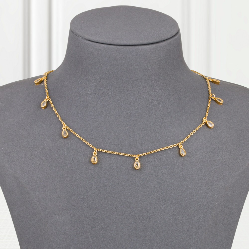 Add an elegant touch to your day with the gold alternative choker, the Zircon teardrop, the perfect touch for every look.