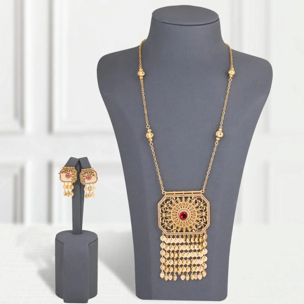 For women who appreciate luxury and timeless elegance, the Classic Red Emerald Necklace is the perfect statement piece. Featuring sparkling red emerald stones, this necklace embodies classic beauty and adds a sophisticated, luxurious touch to any occasion.