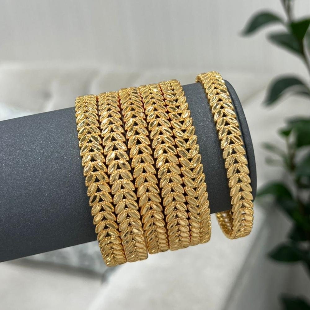 Gold-plated bangles are a touch of luxury that subtly illuminates your wrist. With their intricate engraving and lustrous gold plating, these bangles add a captivating golden sheen that enhances any look. They are a versatile accessory suitable for all times and occasions, whether formal or informal.