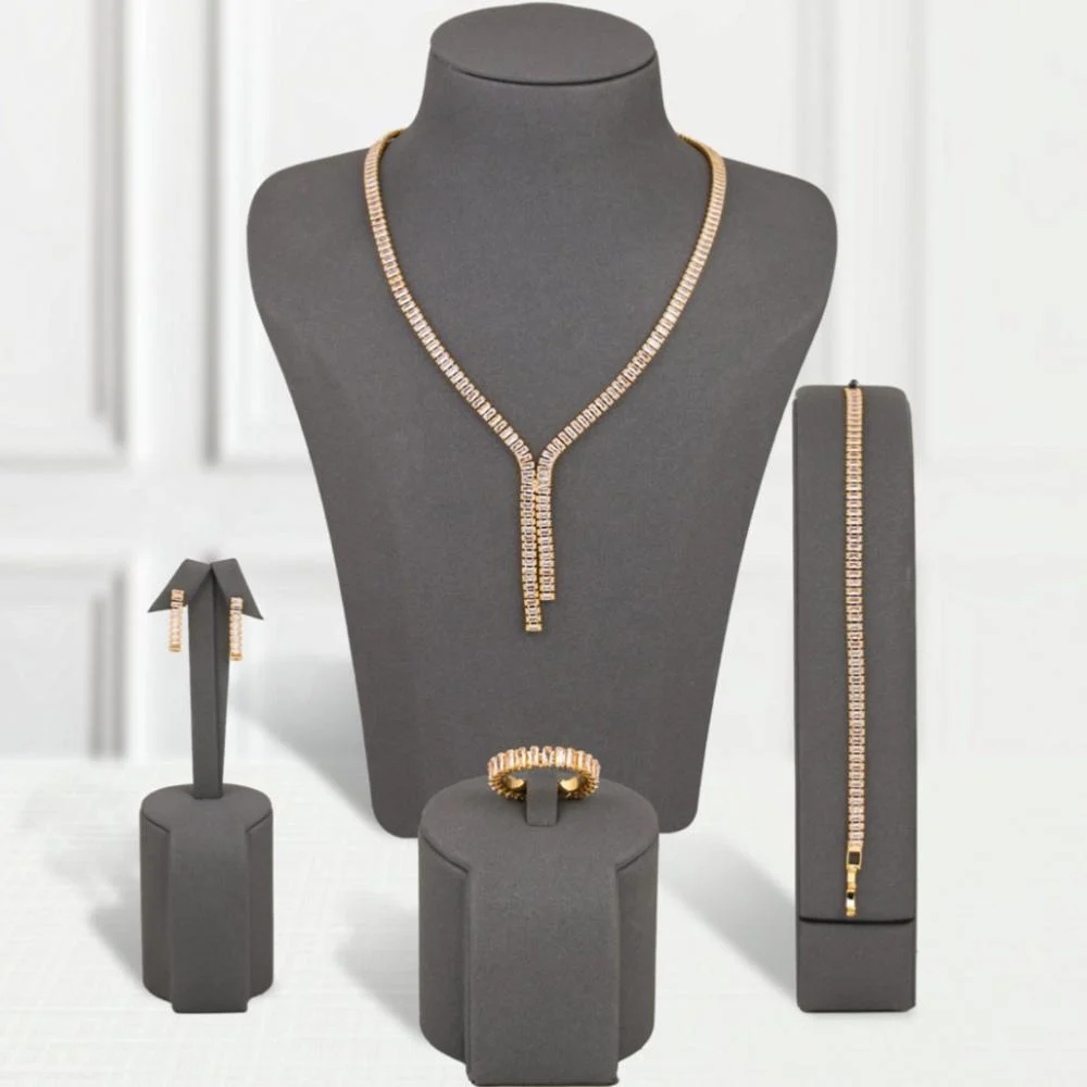 - Components: Luxurious necklace – Elegant bracelets – Ring with sculpted details – Earrings with delicate patterns