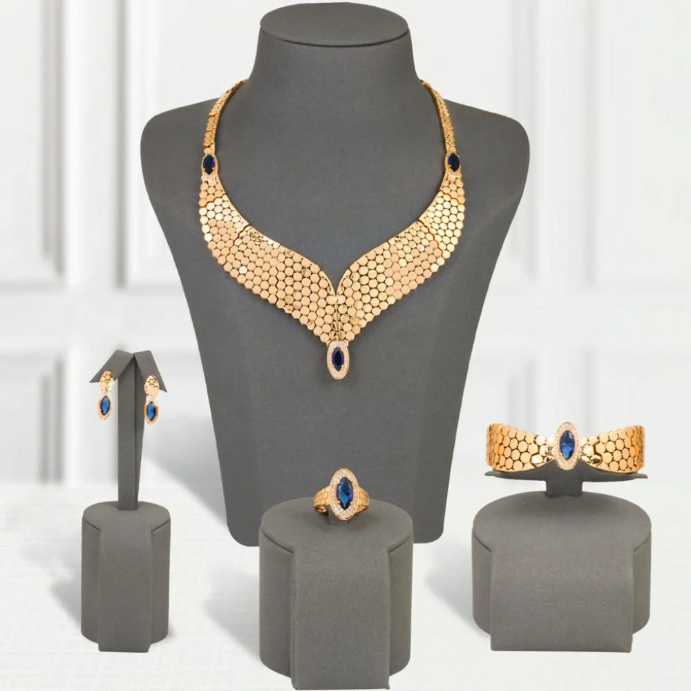 The Falcon Wing Blue Gold Alternative Setfeatures a design inspired by the wings of birds of prey, meticulously detailed and strikingly presentable, complemented by regal blue stones that lend it an aura of sophistication and prestige. This set is not merely for embellishment, but to confidently and calmly express personality and taste.