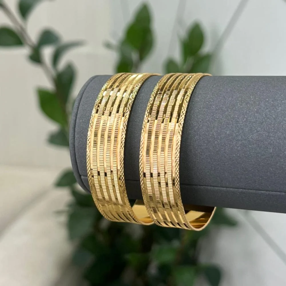 Gold-plated bangles are a touch of luxury that subtly illuminates your wrist. With their intricate engraving and lustrous gold plating, these bangles add a captivating golden sheen that enhances any look. They are a versatile accessory suitable for all times and occasions, whether formal or informal.