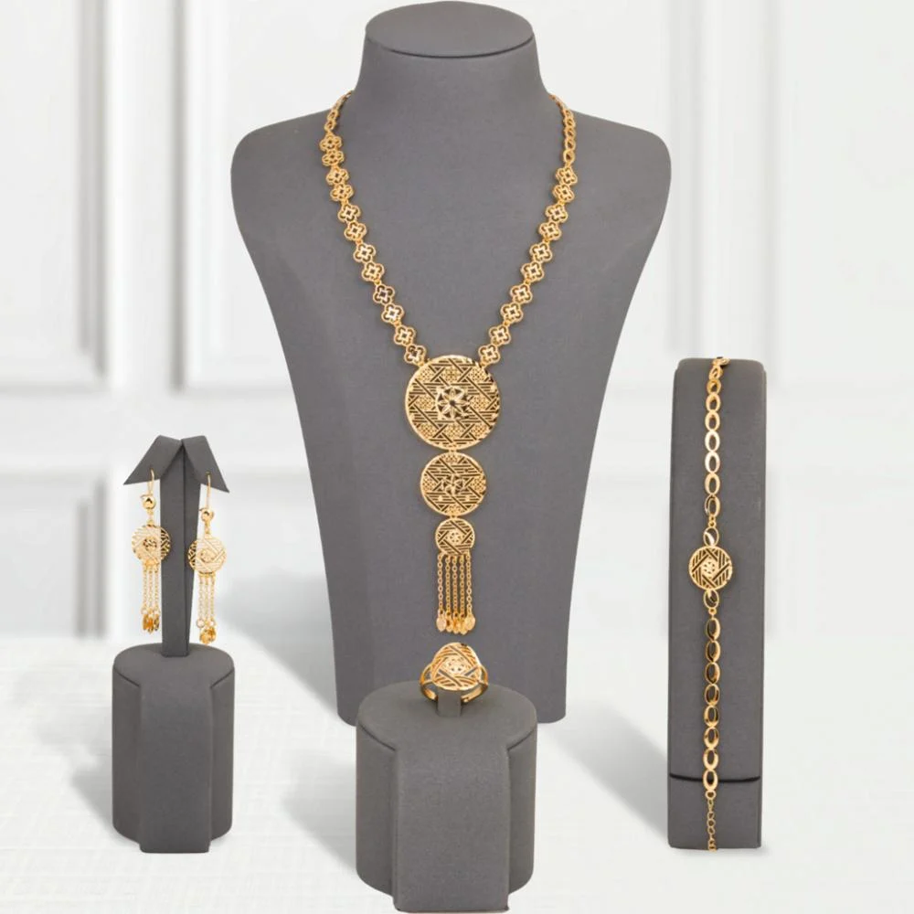 - Components: Necklace, earrings, ring, and bracelet