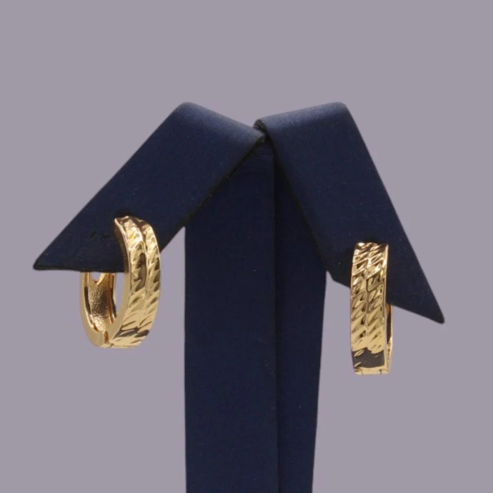 Elevate your style with these gold-plated earrings, featuring a touch of shimmer and elegant design. Their modern design and textured finish add a touch of sophistication and luxury to your everyday look or special occasions.