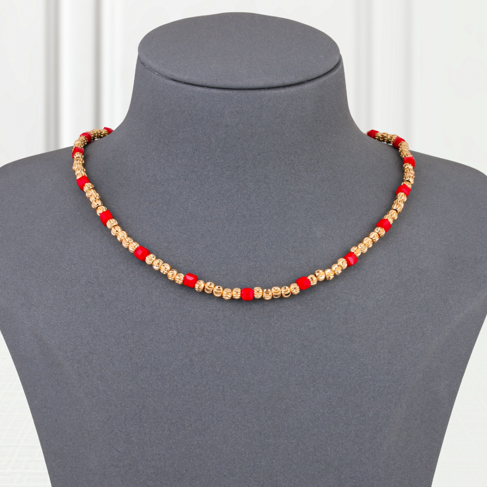 Add a touch of vibrancy and distinction to your look with this gold alternative necklace , a red gold design that combines classic gold with elegant red dots to give you a modern and stylish look at the same time.