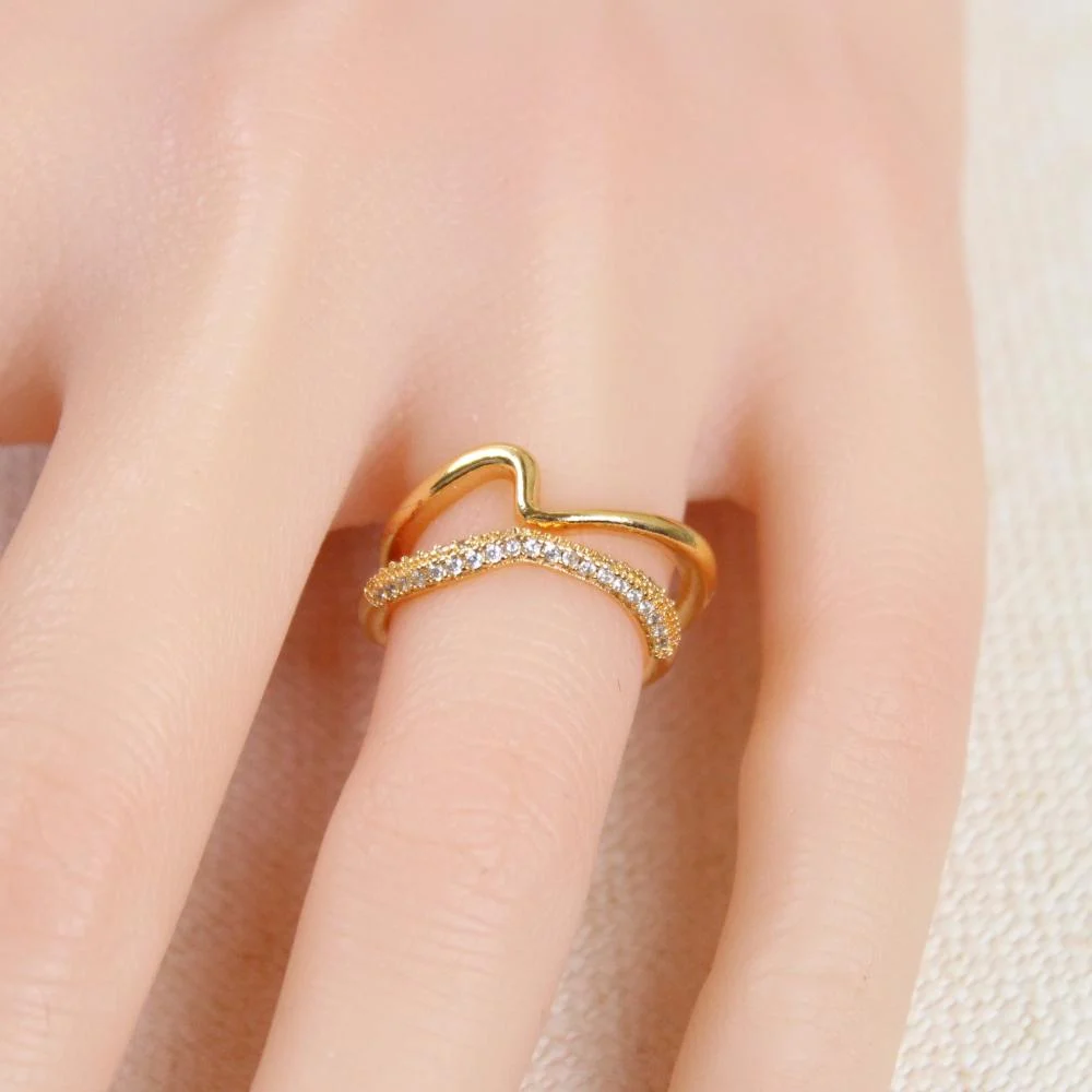 An open gold alternative ring with a modern and elegant design, adorned with sparkling zircon stones that add brilliance and a touch of luxury to your everyday look, or for your special occasions.