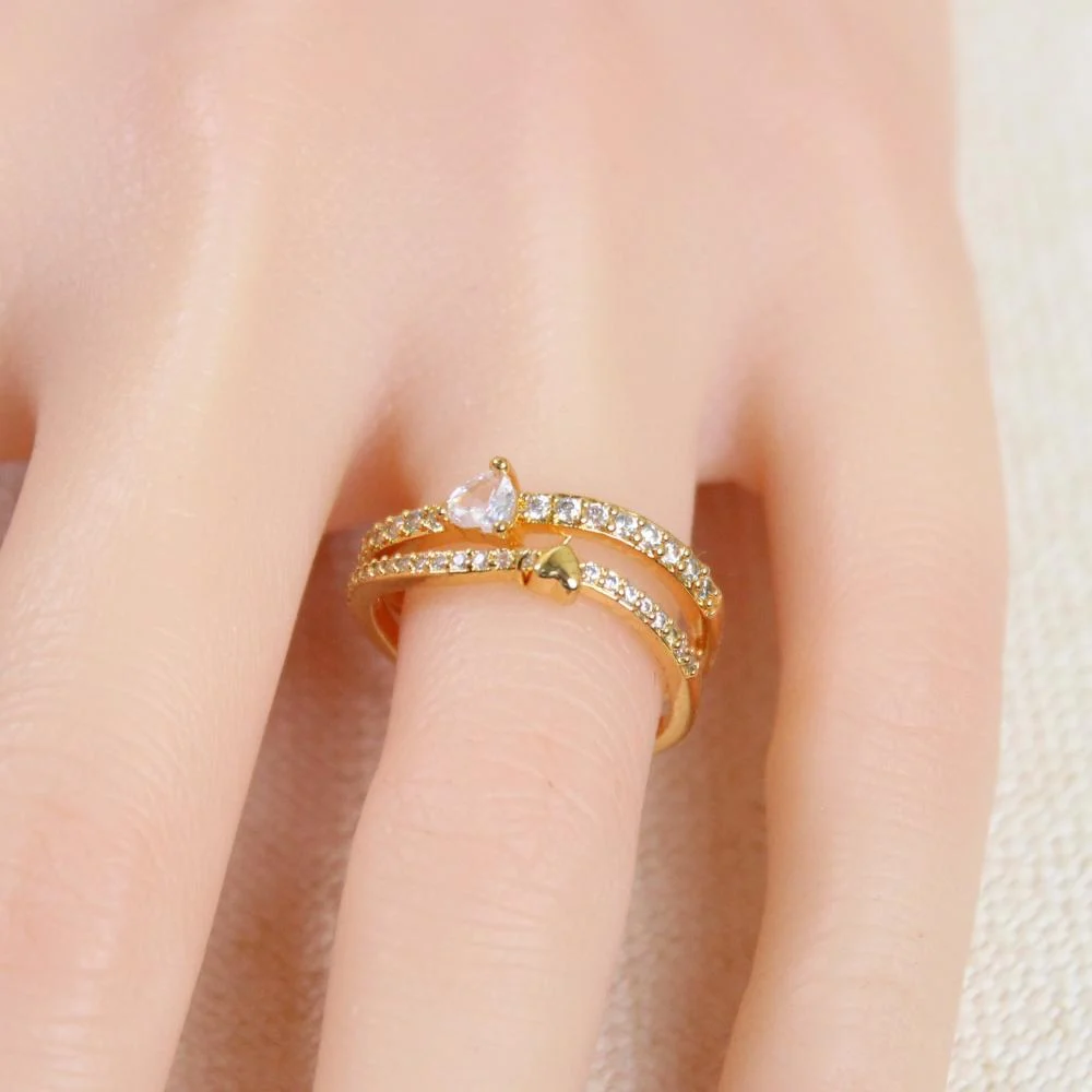 - Name: Gold alternative ring decorated with a heart and a diamond