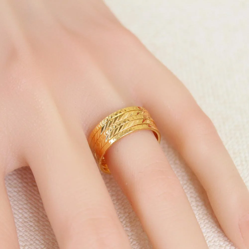 A gold alternative ring with interlocking lines… because beauty lies in simplicity, and the fine details add a touch of luxury to your life.