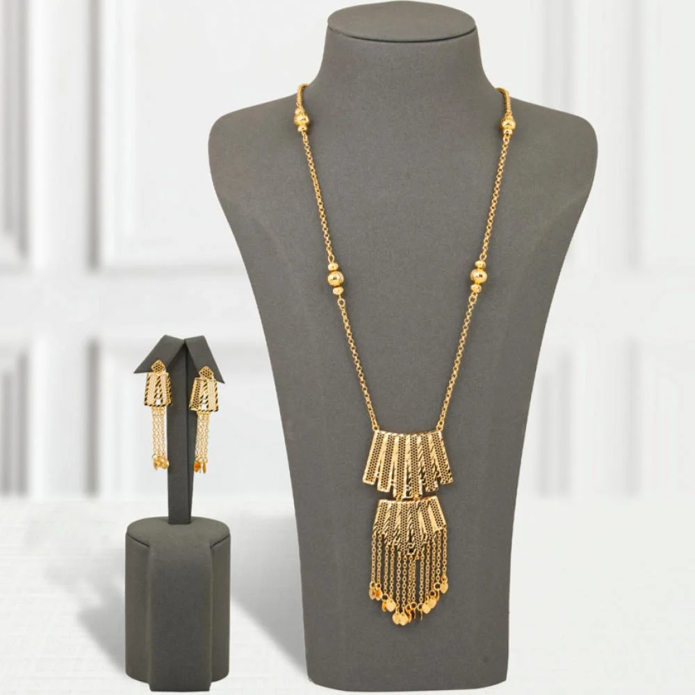 The Treasures Gold Plated Set is the perfect choice to add a touch of distinction and luxury to your look. With its stunning design combining graduated shapes and cascading threads, this set embodies strength and elegance in every detail. Made from high-quality materials and plated with gold to ensure a luxurious look that lasts.