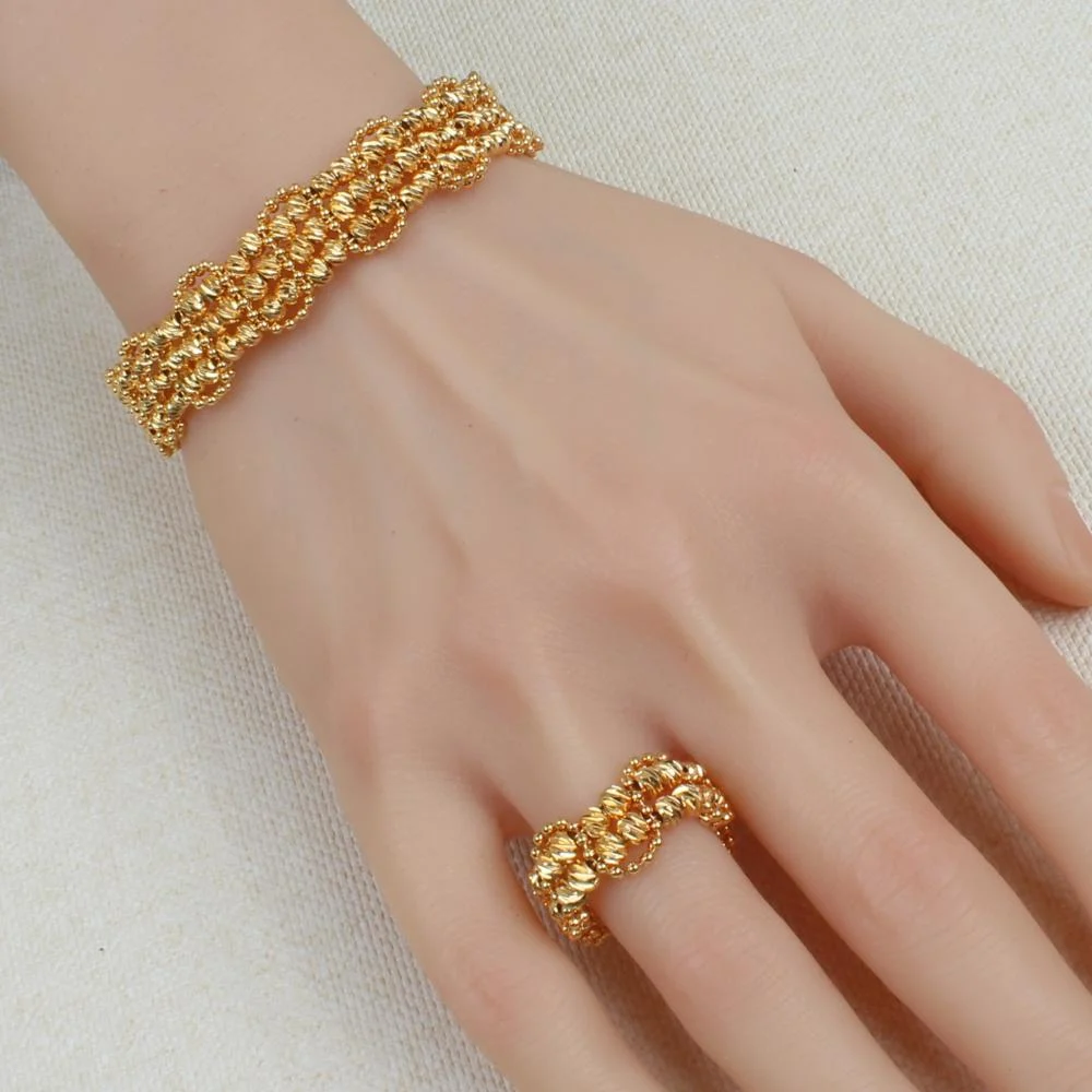 The Gold Alternative Joy Balls Set embodies luxury through its vibrant design, where the delicate balls in the bracelet and ring combine to create a wonderful balance that reflects refined taste and highlights your presence on every occasion.