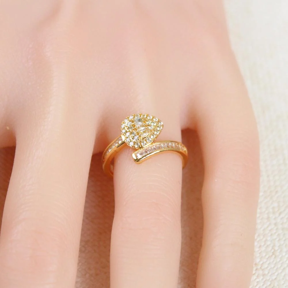 Own now the gold alternative teardrop-studded ring and enjoy unparalleled elegance on all your occasions with a guarantee of quality and excellence.