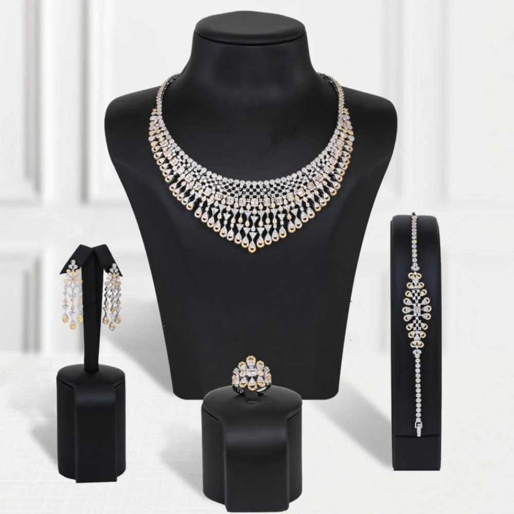 Shine like a princess with this gold-plated diamond-lights set,designed to combine luxury and sparkle. Perfect for occasions when you need a special touch of glamour and allure.