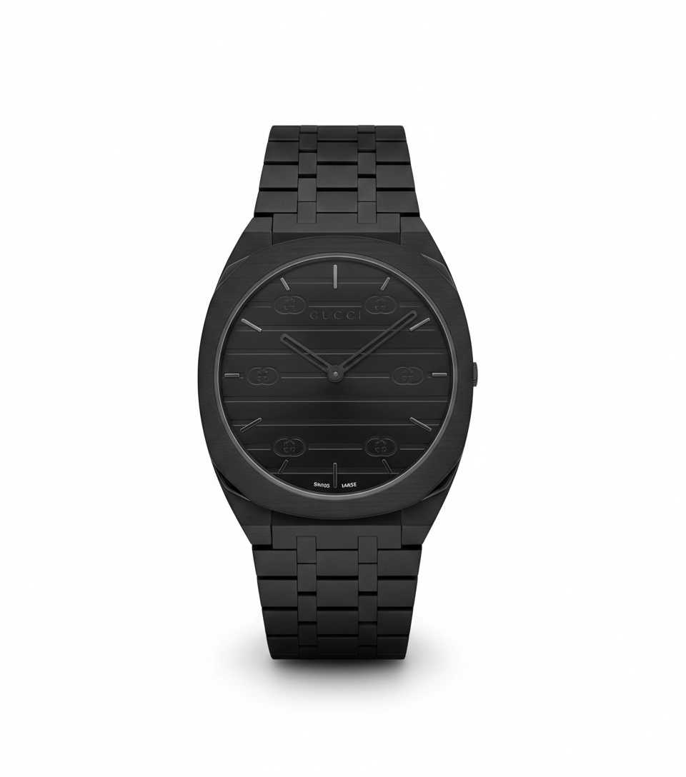 • Iconic Pattern: The dial is subtly embossed with horizontal lines and the signature interlocking G motif, adding depth and brand recognition without distracting from the sleek design.