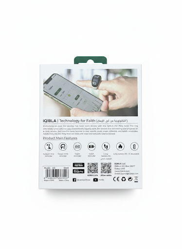 iQIBLA App Connectivity: Using Bluetooth 5.1, the ring syncs with the iQIBLA Life app to log your Zikr history, set daily goals, and synchronize your data to the cloud.