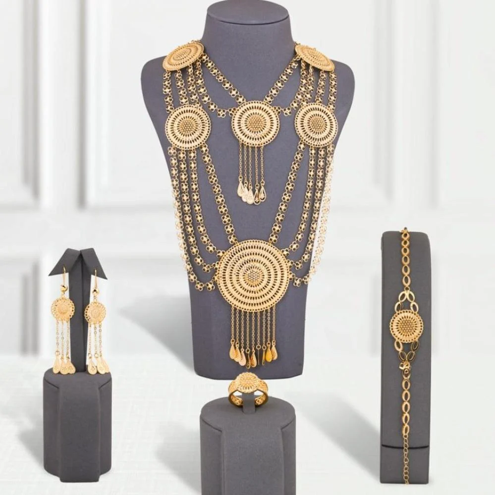 - Components: Luxurious necklace – Elegant bracelets – Ring with sculpted details – Earrings with delicate patterns