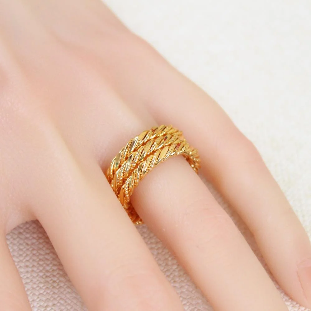 The luxurious rope gold alternative ring is a distinctive piece for those who appreciate intricate, twisting designs that reflect the beauty of intertwining and fine details. Its bold design makes it perfect for special occasions or even everyday wear.