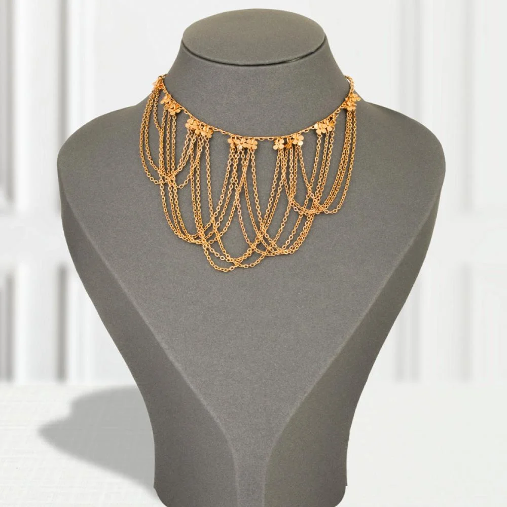 The gold-plated chain necklace is an essential accessory for any modern look. Meticulously designed to complement every detail, its intricate design of multiple chains adds a touch of glamour and distinction. It’s specially crafted for women seeking a unique accessory suitable for various occasions.