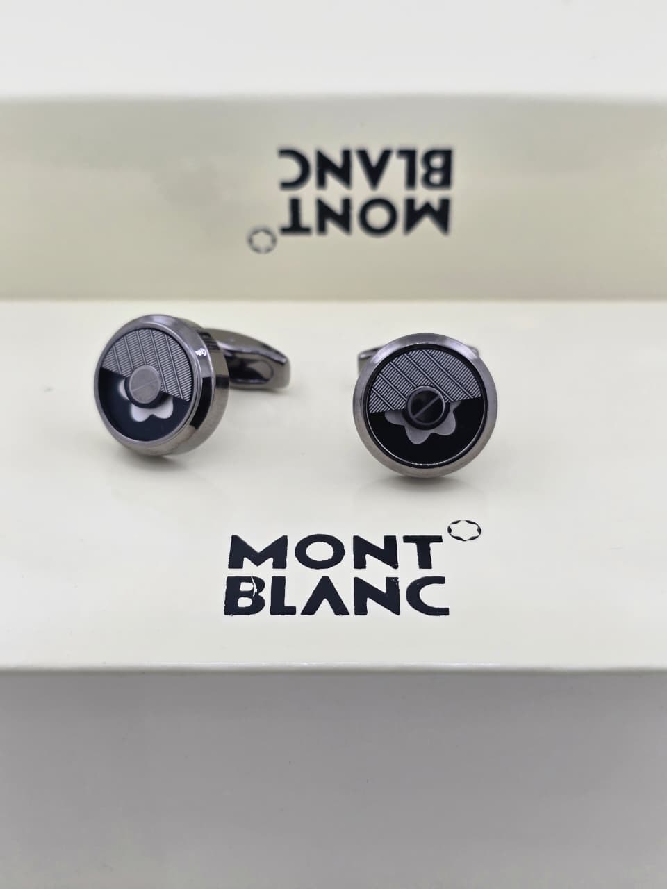Crafted from high-quality stainless steel, these luxury cufflinks for men ensure durability while maintaining a polished finish. The combination of geometric texture and glossy black enamel creates visual contrast, giving these Montblanc accessories for men a bold yet sophisticated appearance.