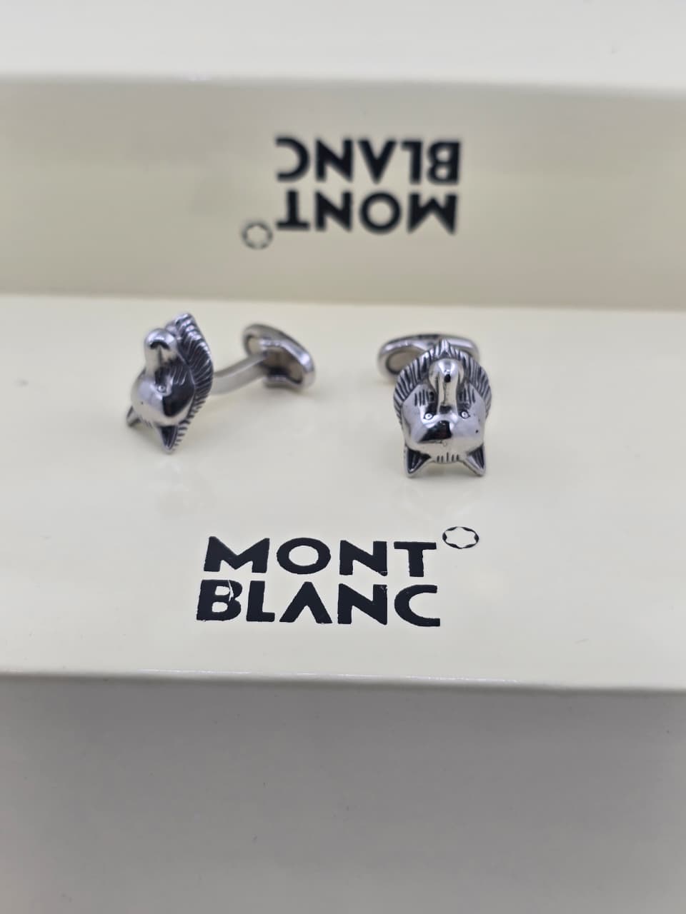 • Premium Montblanc cufflinks with detailed lion head design