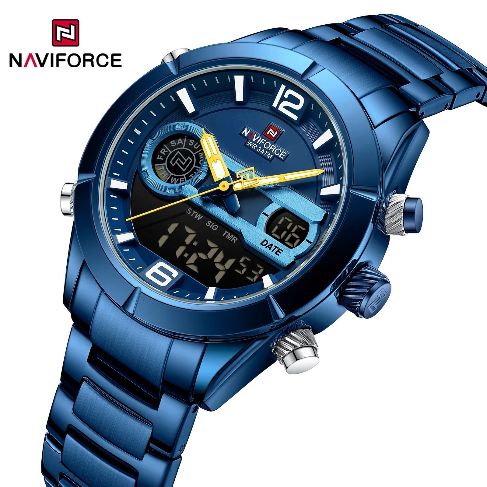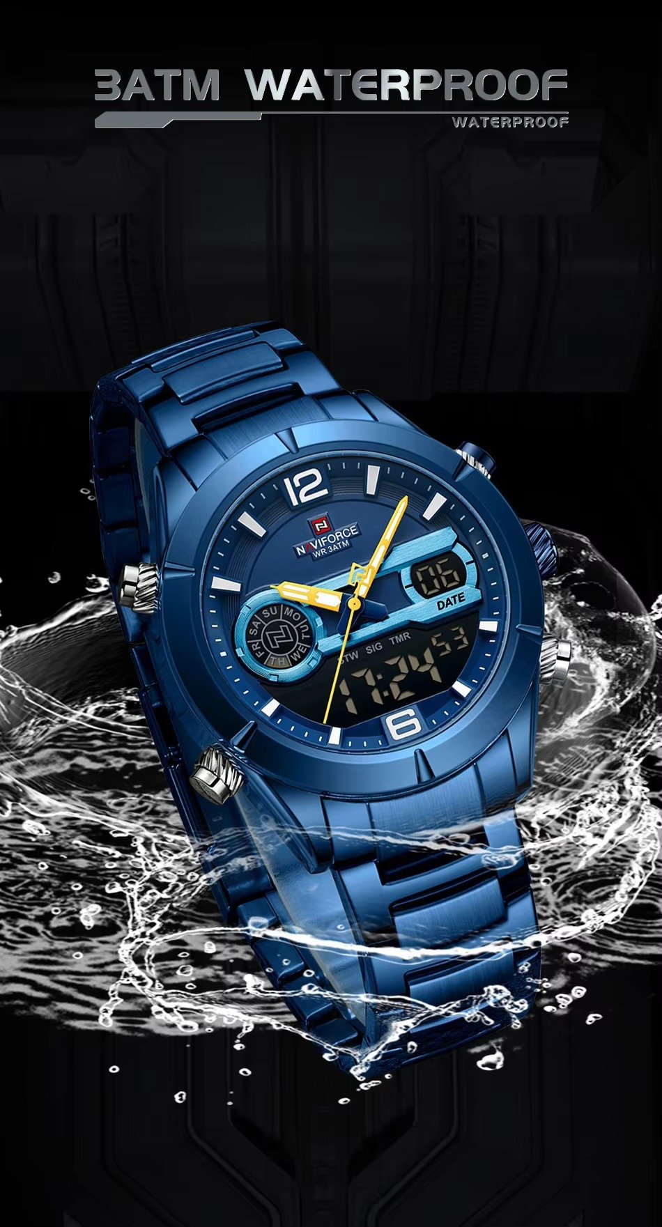 Elevate your style with the NAVIFORCE Dual Display Sports Watch. Designed for the modern man who values both functionality and fashion, this timepiece features a striking deep blue finish that complements any formal or casual outfit.