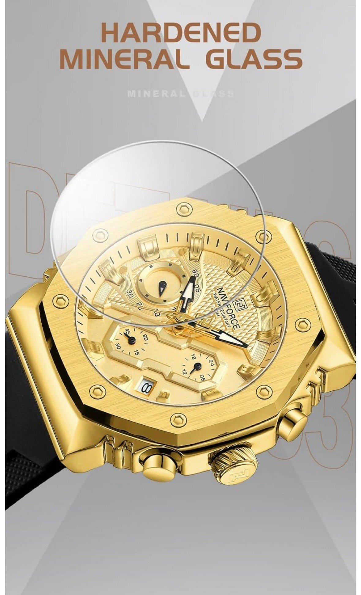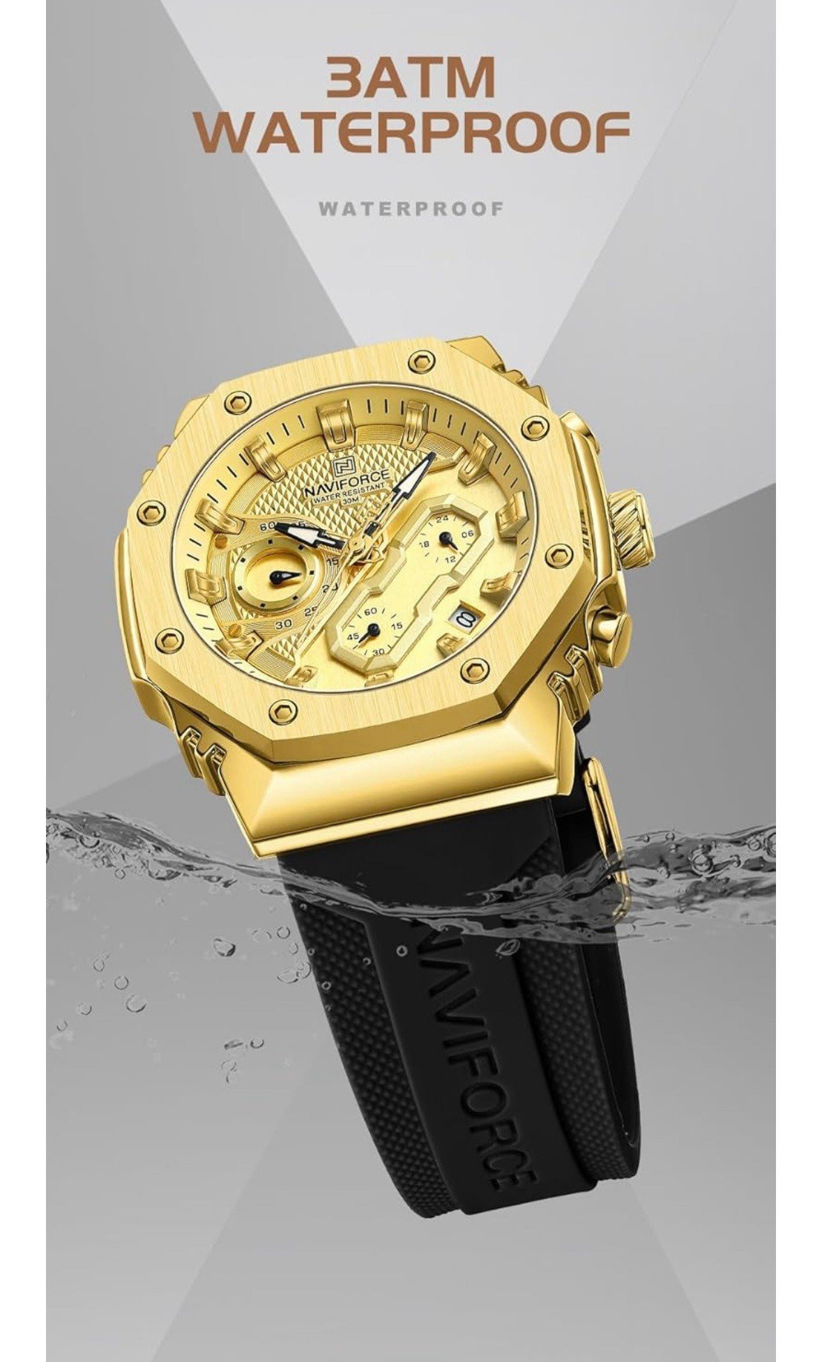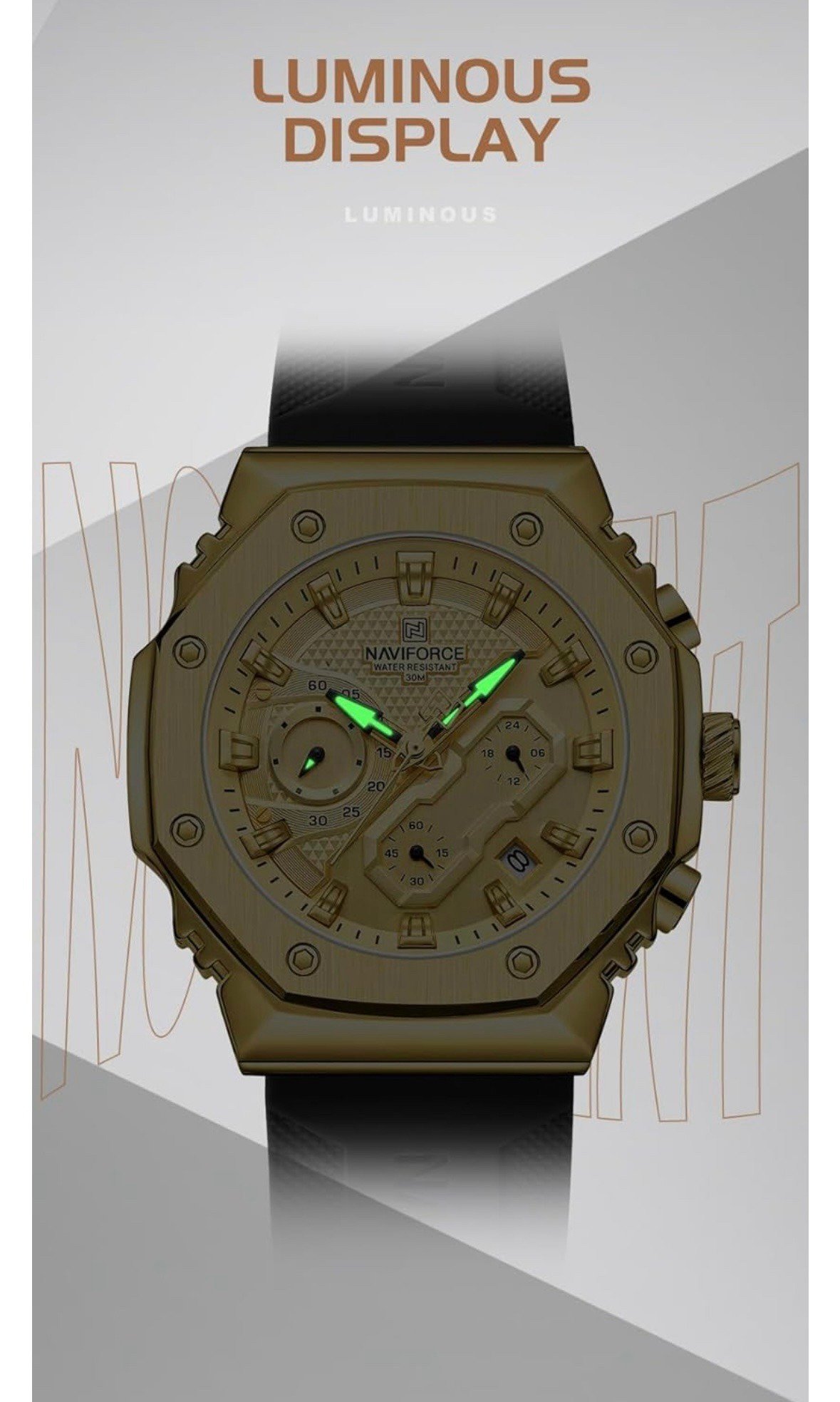 The Naviforce 8035G is a premium unisex chronograph sports watch designed for performance, comfort, and style. Built with a strong waterproof case and a soft silicone strap, it is suitable for everyday use as well as sports activities.