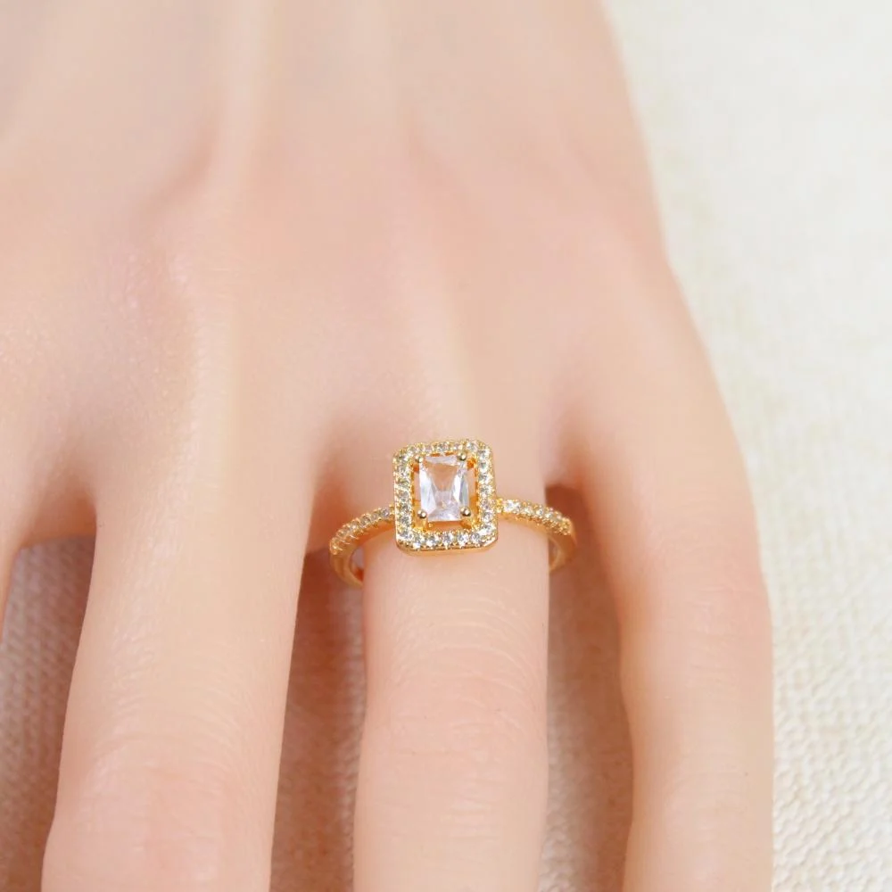 • Name: Rectangular Gold Alternative Ring with Zircon Stone