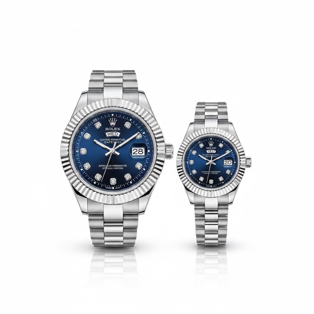 This Day-Date Model watch set is crafted for those who value traditional design and dependable performance. The set includes both a Men’s and a Women’s timepiece, featuring high-quality construction and a refined finish.