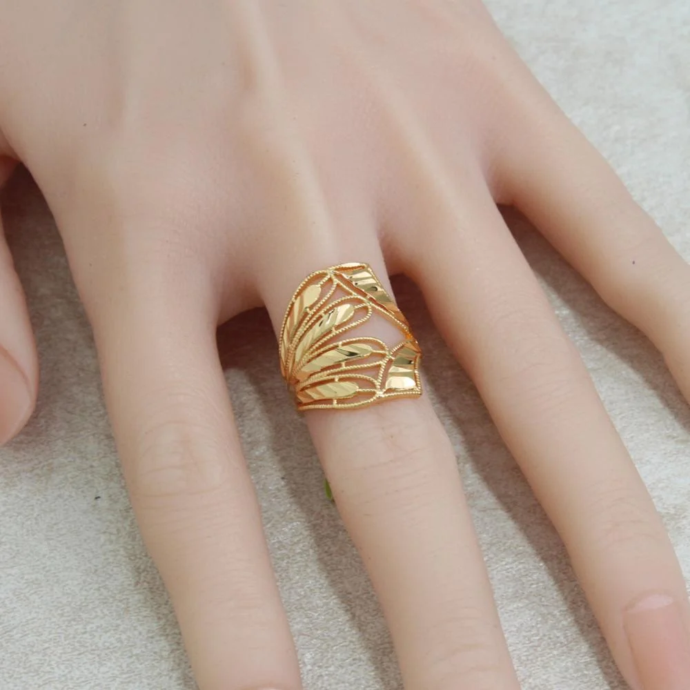A piece that retains its prestige wherever it is. The rose-stamped gold alternative ring is the embodiment of inherent elegance, a design that mimics royal rings but with the softness of a flower, to give you a touch of authentic luxury.