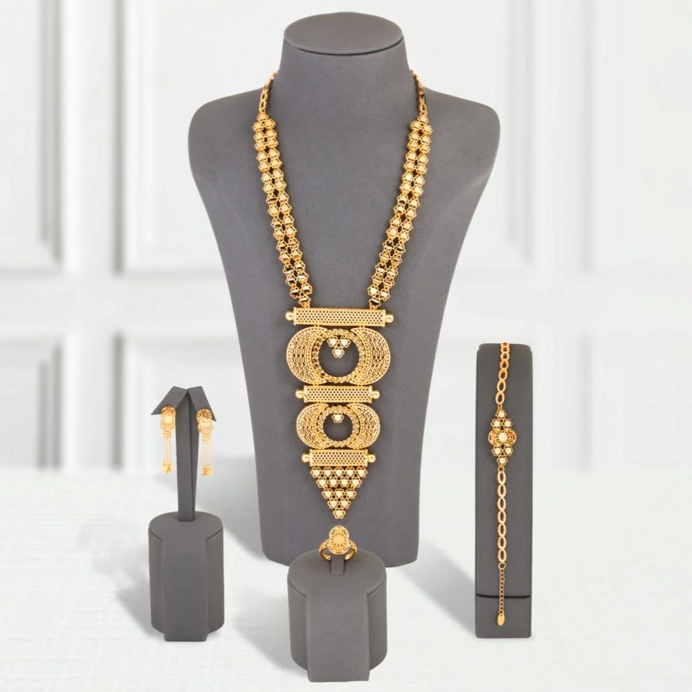 Elevate your style with this luxurious, authentic, and regal gold-plated set – the perfect choice for special occasions and a sophisticated gift. Order now and experience beauty that exudes elegance and confidence!