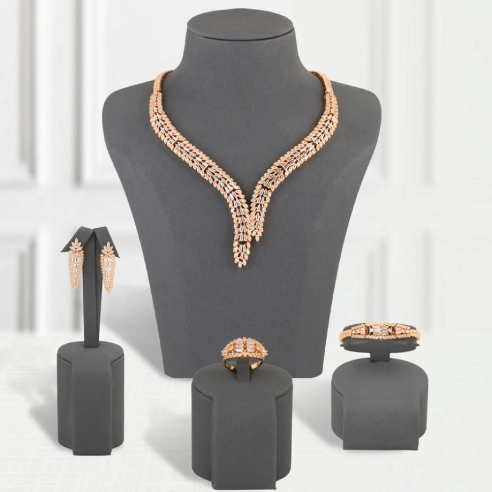 Get ready for unparalleled brilliance with the Royal Gold Alternative Set, designed to reflect the charm of elegance and the allure of details.