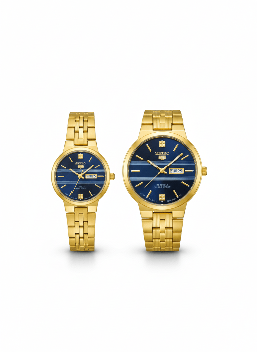The Seiko 5 Inspired Presidential Couple Set offers the perfect balance of prestige and value. Crafted as a high-tier reproduction, this set captures the iconic aesthetic of luxury horology with meticulous attention to detail. Every element, from the textured sunray dial to the polished metallic finish, is designed to provide an authentic high-end experience.