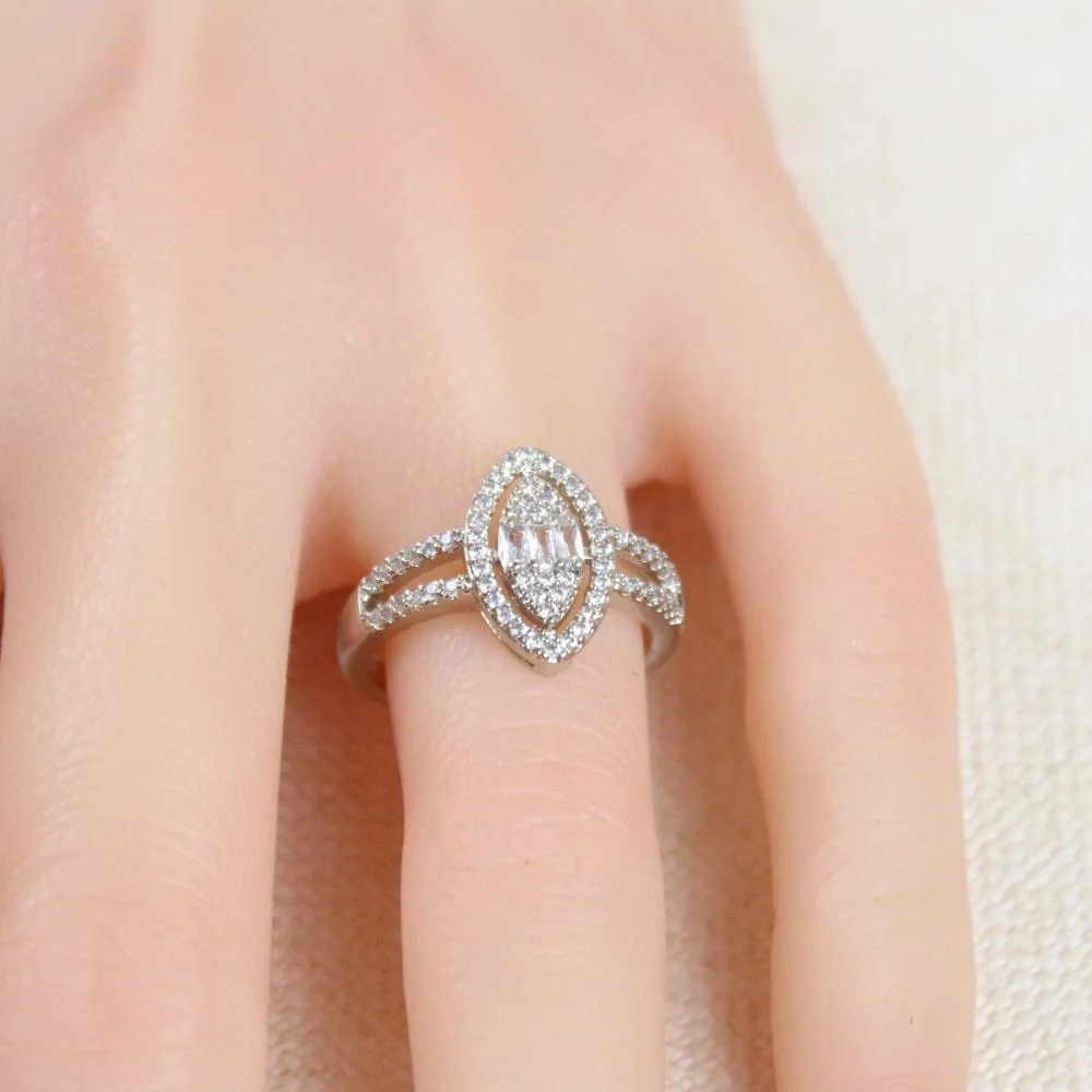 An elegant and sophisticated ring with a design inspired by the shape of the eye, giving you a unique and distinctive look with a touch of luxury and refined taste, perfect for adding a touch of sophisticated beauty to your jewelry collection.
