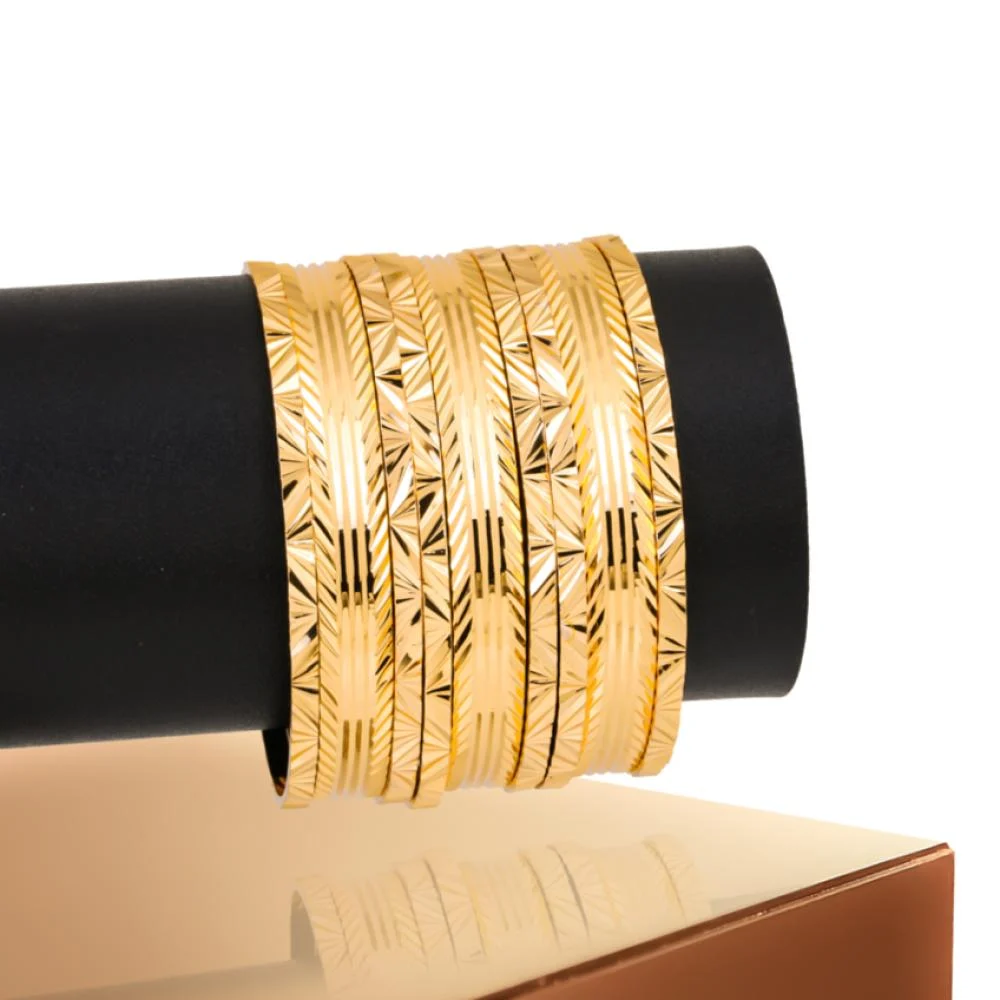 The Sparkling Glitter Collection bangles, consisting of 8 carefully selected pieces, blend seamlessly to adorn your wrist with unparalleled royal elegance.