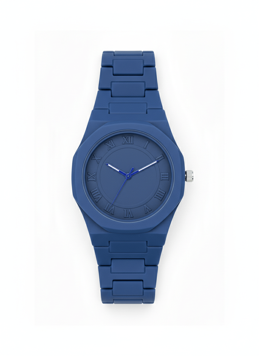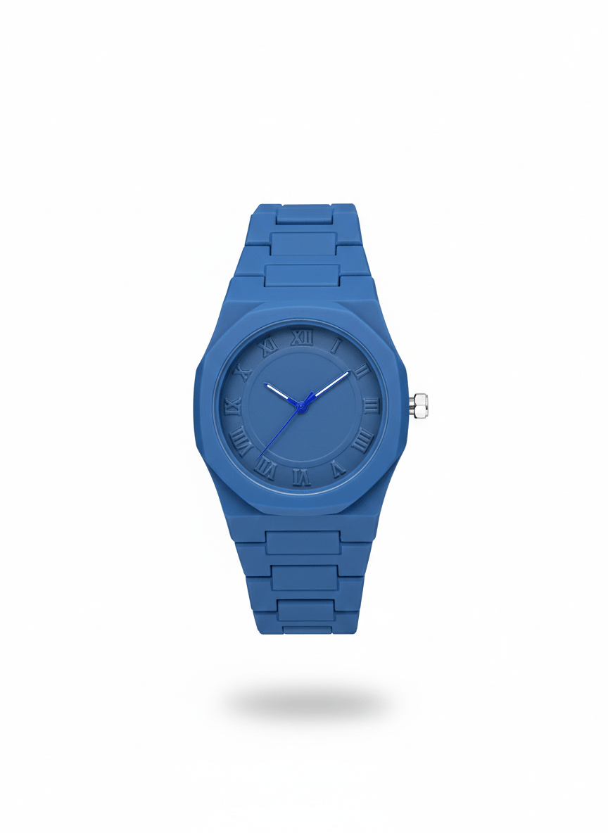 This watch features a seamless “integrated” design, where the strap and watch head flow together in one continuous Midnight Blue tone. The lightweight, ergonomic construction ensures it sits comfortably on your wrist all day, while the matte surface offers a premium, tactical feel.
