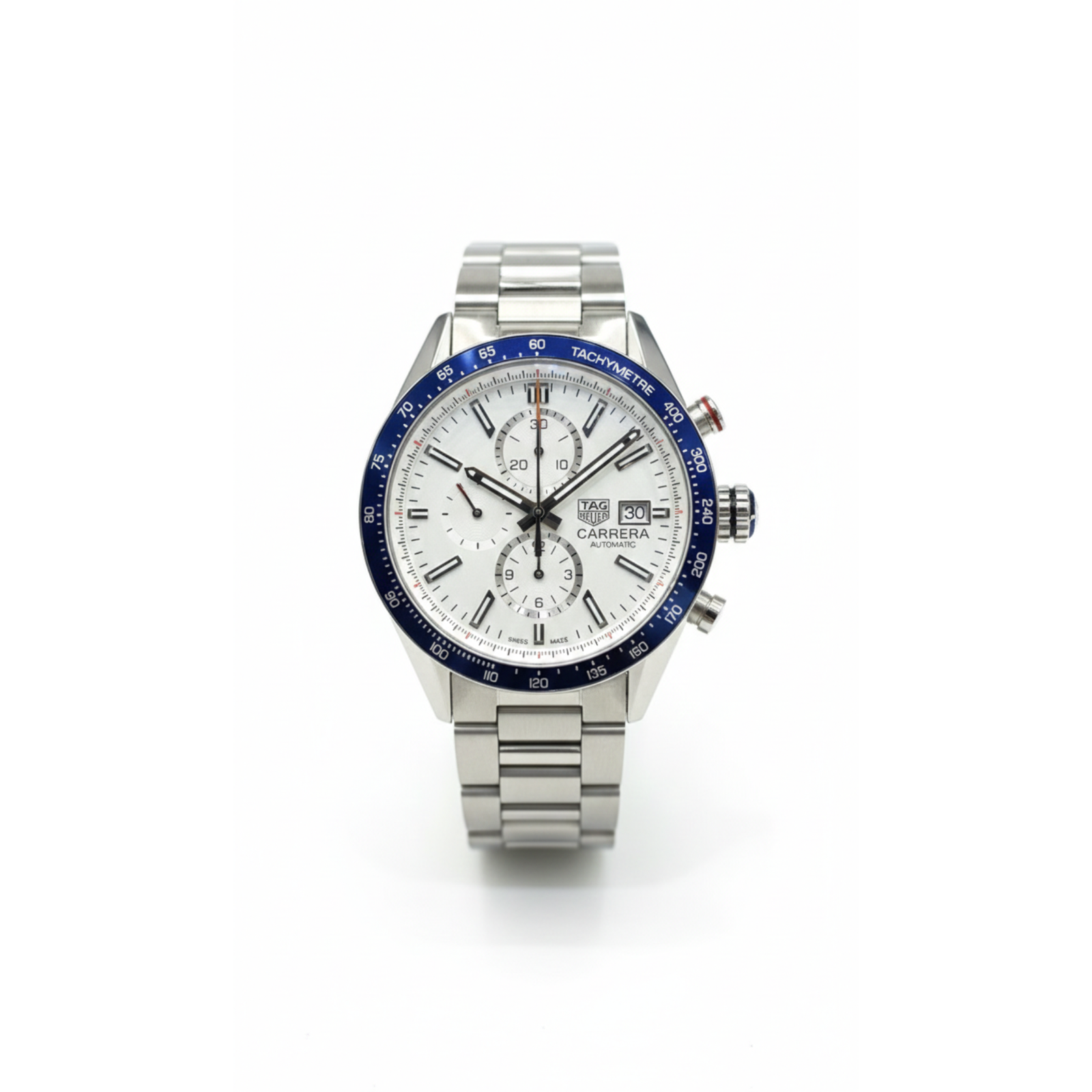 • Sophisticated Finish: The watch includes a signature Carrera-style crown with a blue ring detail and polished pushers for a complete high-end look.