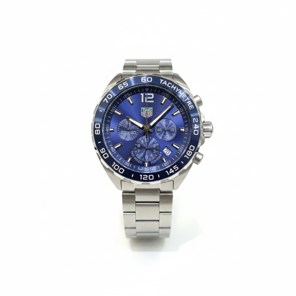 • Tachymeter Bezel: Equipped with a fixed blue bezel featuring a tachymeter scale, staying true to the professional racing heritage of the Formula 1 series.