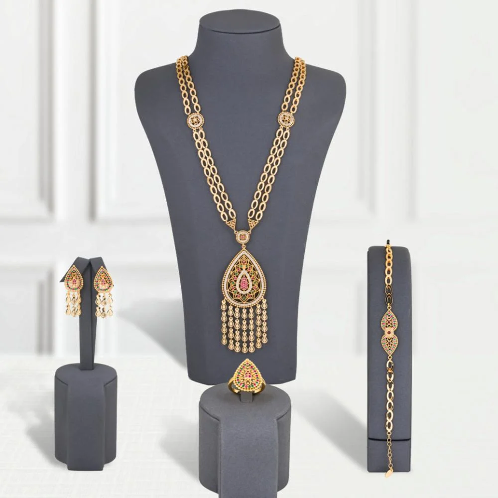 • Components: Luxurious necklace – Elegant bracelets – Ring with sculpted details – Earrings with delicate patterns