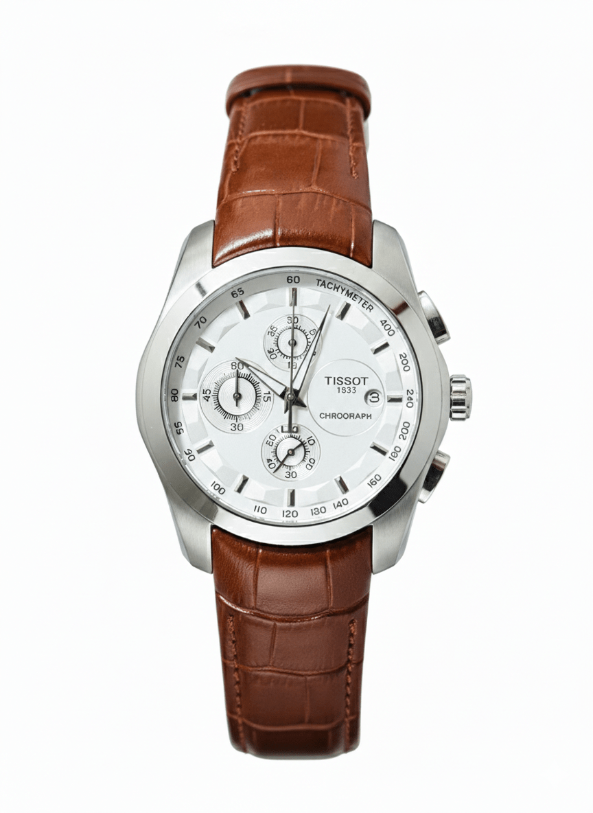 Designed for those who appreciate the finer things in life, this Silver Dial Chronograph is the perfect blend of performance and prestige. The crisp, clean white-silver dial provides a stunning contrast against the rich brown leather, making it a versatile accessory for any wardrobe.
