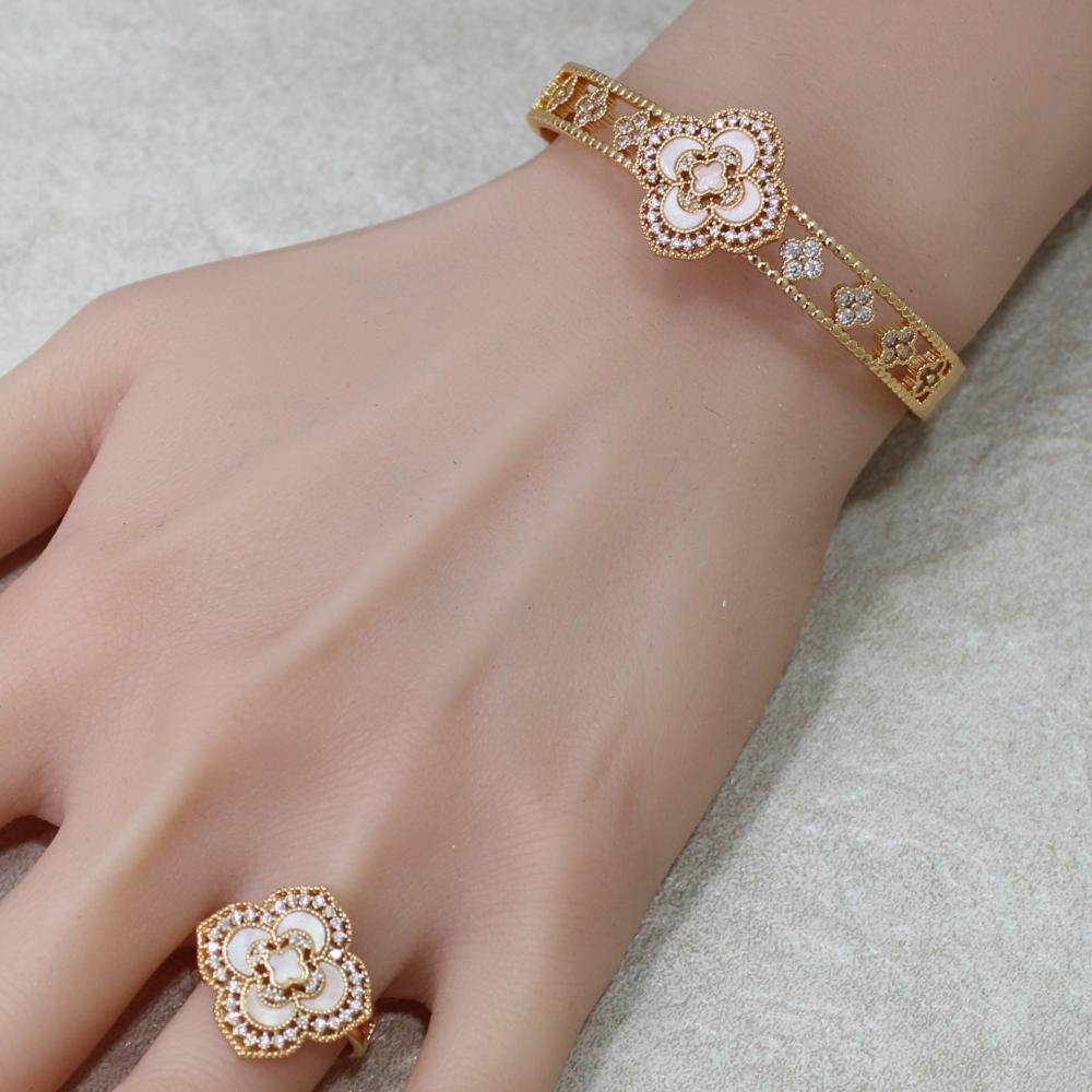 A unique touch that blends tradition and modernity. The White Nile Rose bracelet and ring create a harmonious and elegant set.