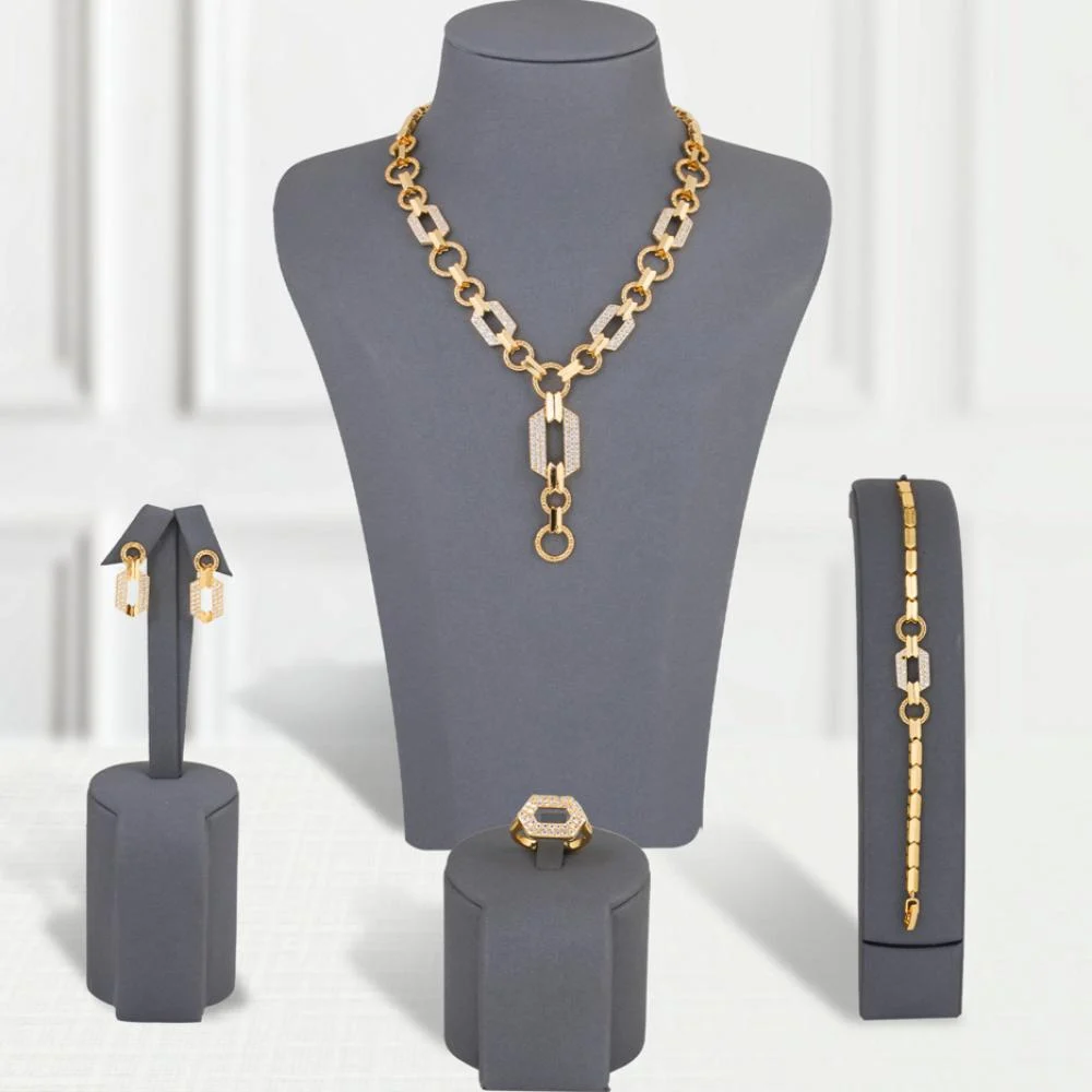 • Components: Luxurious necklace – Elegant bracelets – Ring with sculpted details – Earrings with delicate patterns